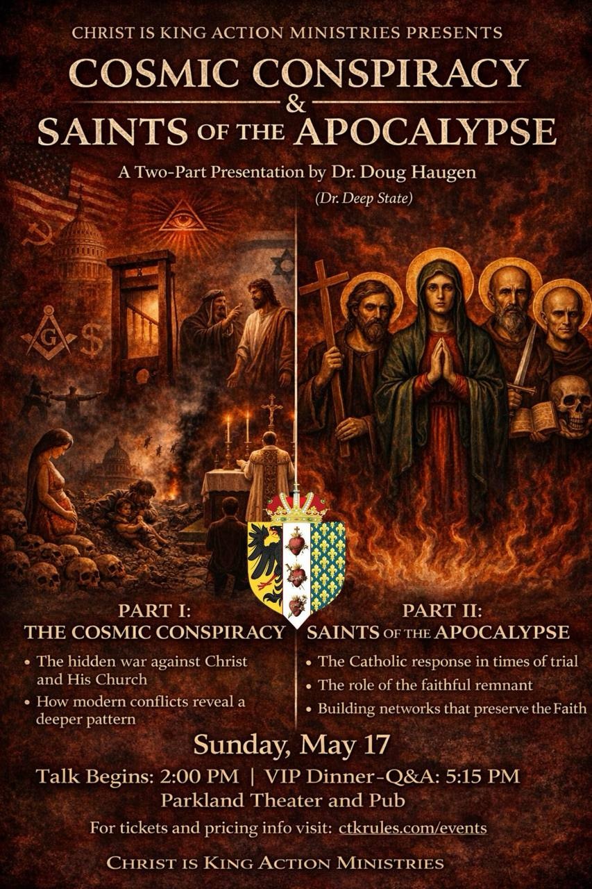 For all of you within reasonable driving distance to Cincinnati who are fans of Dr. Haugen of Dr. Deep State, he will be in Cincinnati giving a couple of talks on Sunday, May 17th, on the Cosmic Conspiracy of organized Jewry and the Saints of the Apocalypse that oppose them. Get your tickets here!